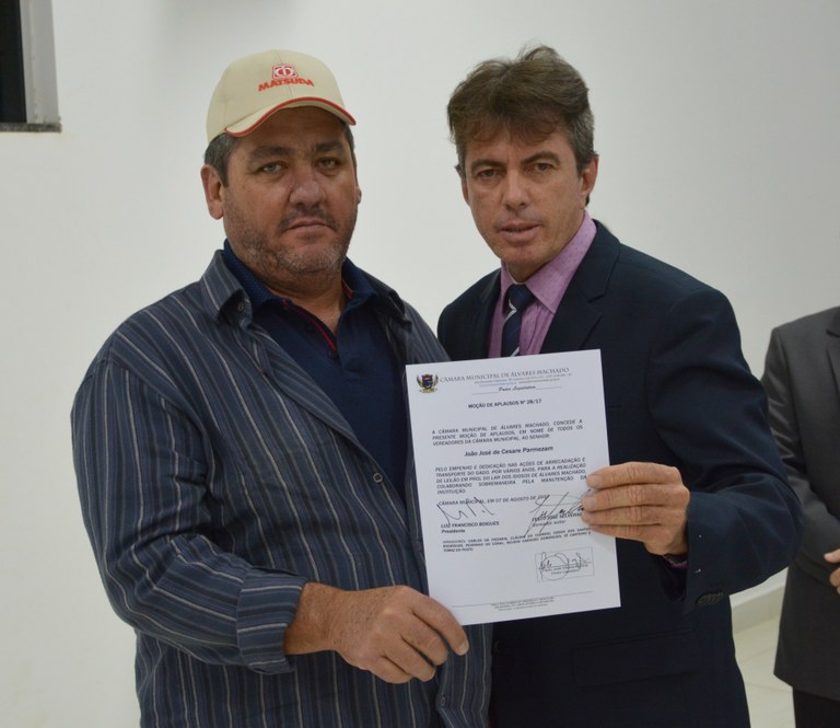 Dia (21/08), na 22ª Sessão Ordinária, foram entregues moções de aplausos aos voluntários que contribuem, durante anos, para a realização do leilão em prol ao Lar dos Idosos de Álvares Machado. Dentre as ações, destacam-se as arrecadações e transporte de gado, colaborando assim, com a manutenção da instituição; sinônimo de empenho e dedicação.