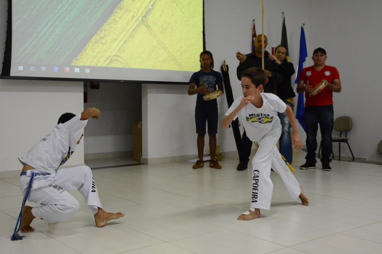 O evento contou com a apresentação da capoeira por alguns alunos e mestre Edvaldo.